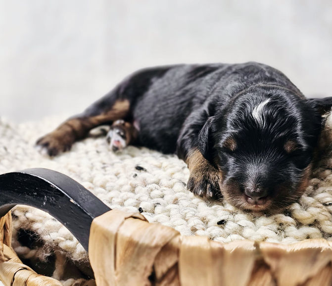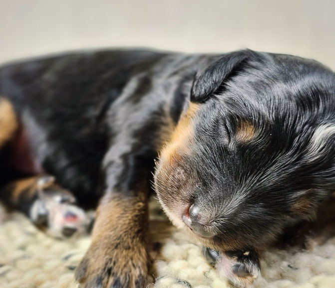Hemlock loves to explore and play and wrestle. He is soft and snuggly and sweet. He is our second biggest pup.